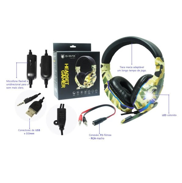 • 1x Headset Gamer Camuflado BM-218 com LED